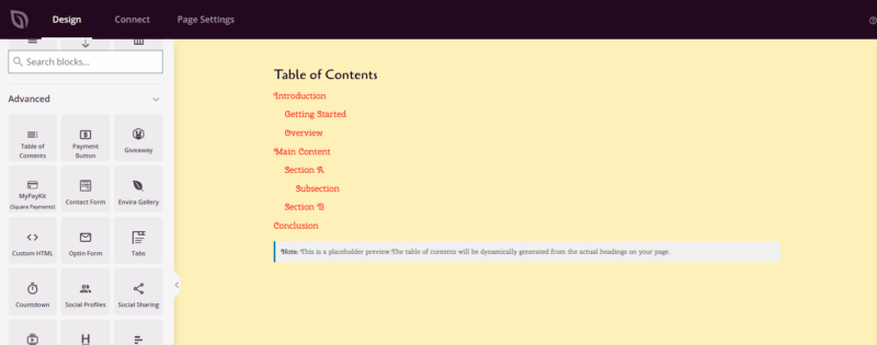 Follow these steps to add a Table of Contents block to your SeedProd page: